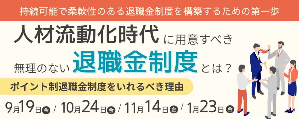 本セミナーでは、今後採用すべきポイント制退職金制度の制度解説と、導入・運用のポイントや
